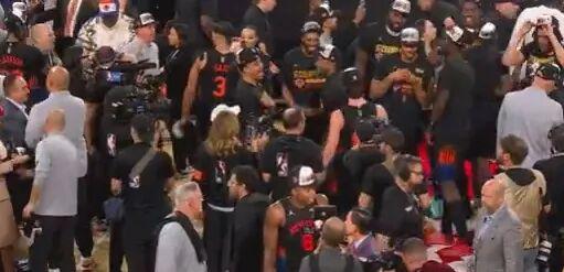 尼克斯球员高兴坏了,像夺冠一样开心。